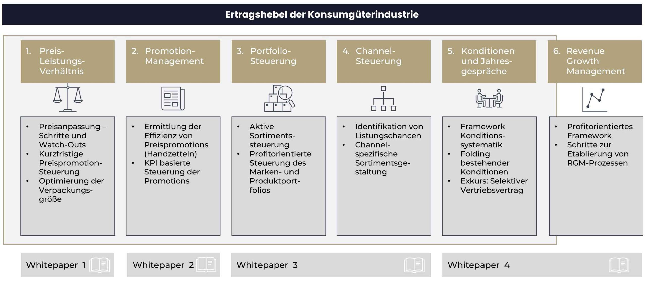 - Im dritten Teil unserer Whitepaper-Reihe gehen wir auf Ertragshebel ein, die aus dem Produkt- und Kanalmix der Konsumgüterunternehmen entstehen. Wie werden die Potenziale identifiziert und gehoben?