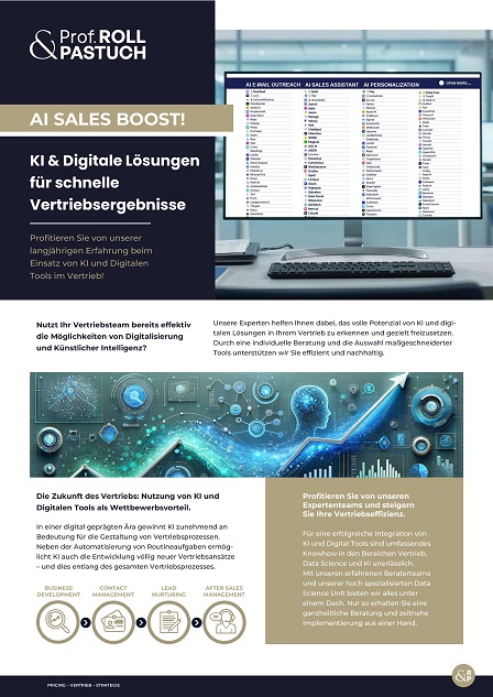 Prof. Roll & Pastuch ist darauf spezialisiert, Unternehmen bei ihrer digitalen Vertriebsstrategie zu unterstützen und kann diese sowohl auf strategischer als auch operativer Ebene begleiten. Gemeinsam wird die digitale Transformation im Vertrieb forciert und digitale Werkzeuge entlang des Vertriebsprozesses verankert.